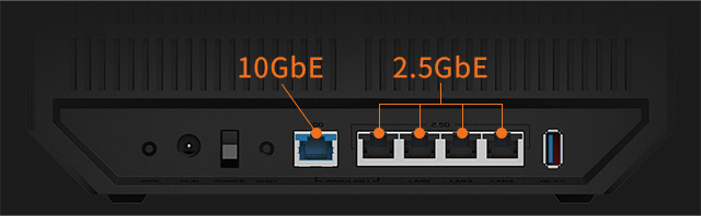 | 有線ポート | 10G WAN/LAN ×1、2.5G WAN/LAN ×1、2.5G LAN ×3 |