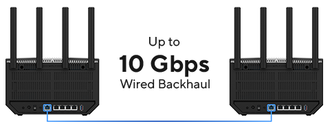 ワイヤレスバックホール、または有線の10Gポート、2.5Gポートのどちらでもバックホールを構築可能