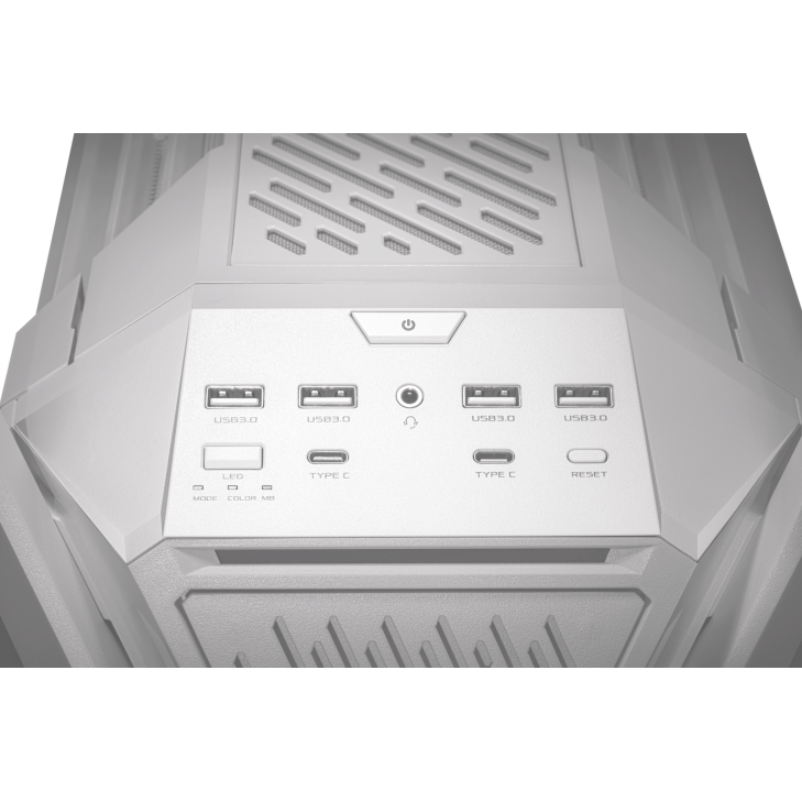 - 洗練された外観:Aura Sync対応のファンハブとライティングパネル、ヘアライン仕上げのアルマイト製ケース