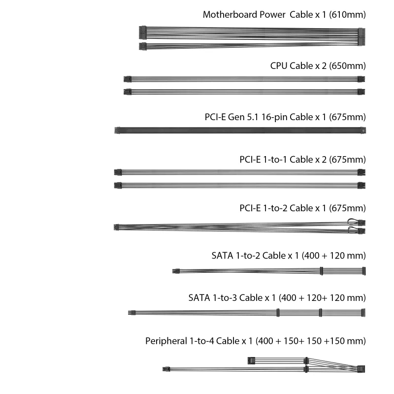 PCI-E Gen 5 16 ピン ケーブル x 1 (675 mm)