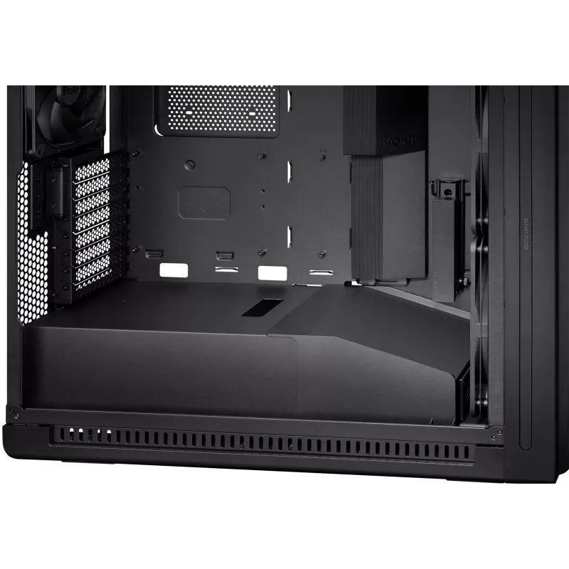- 優れたエアフローを実現するために: 45%メッシュ構造の15.5mmフロントパネルグリルと、200x38mmの極厚フロントファン2基が搭載され、最大の吸気量が確保されています。140mmのリア排気ファン1基も装備されています。
