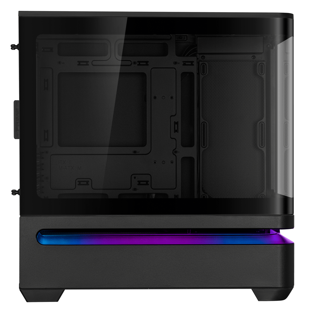 - フロントからサイドまでシームレスに広がる曲面強化ガラスにより、どの角度からもケース内部を見渡せる