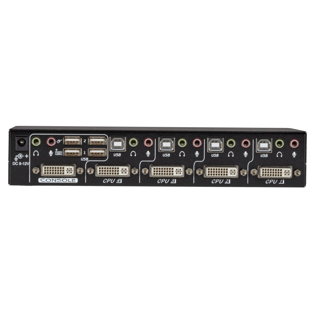 KV9614Aは、最大4台のPCを1組のUSBキーボード・USBマウス・DVIモニター・オーディオで切替操作できるデスクトップKVMスイッチです。