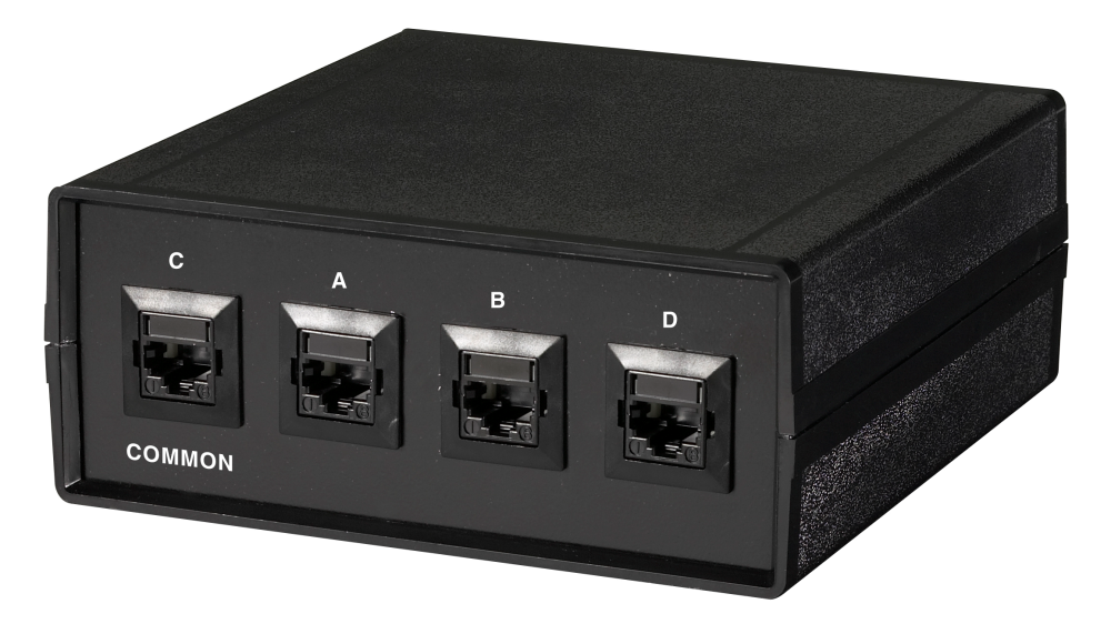 共有したいPC/機器(または共通回線)をCOMMONに接続し、切替先のネットワークや機器をA・B・Dへ接続するだけで導入できます。