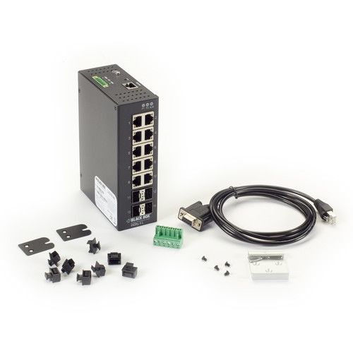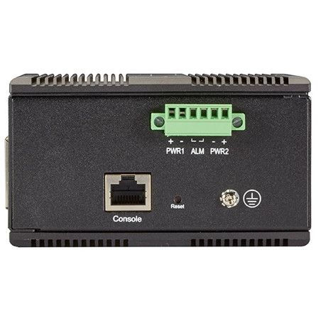 このスイッチは冗長電源入力を備えており、DINレールおよびパネルマウント用のキットが付属しています。電源ユニット(MDR-40-12、MDR-40-24、MDR-40-48、およびSDR-240-48)は別売です。