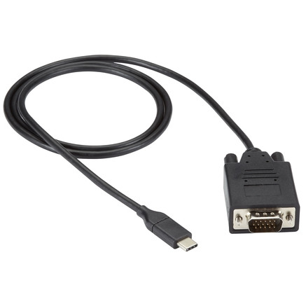 Black Box の USB-C to VGA 変換ケーブルは、USB-C(DisplayPort Alt Mode)または Thunderbolt 3 ポート搭載のノートPC、タブレット、スマートフォンなどの映像出力を、VGA対応のモニターやプロジェクター、ディスプレイへ簡単に伝送できるケーブル一体型アダプターです。