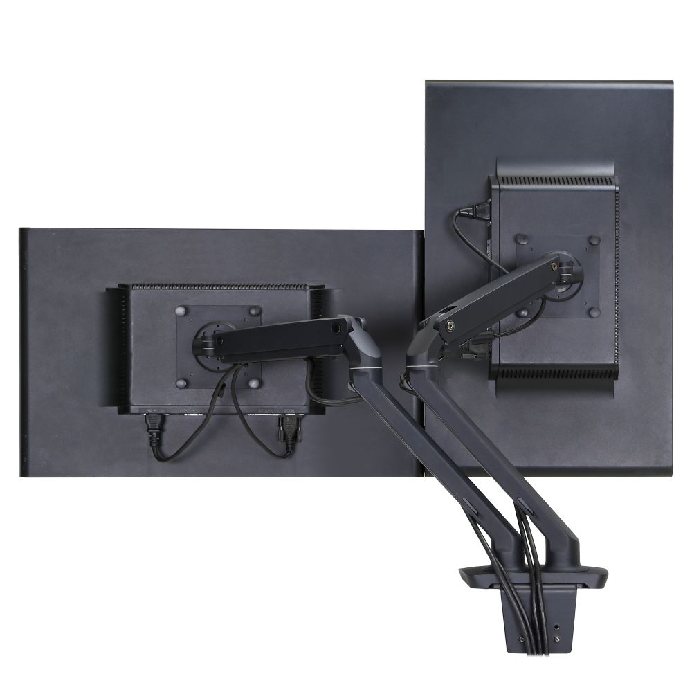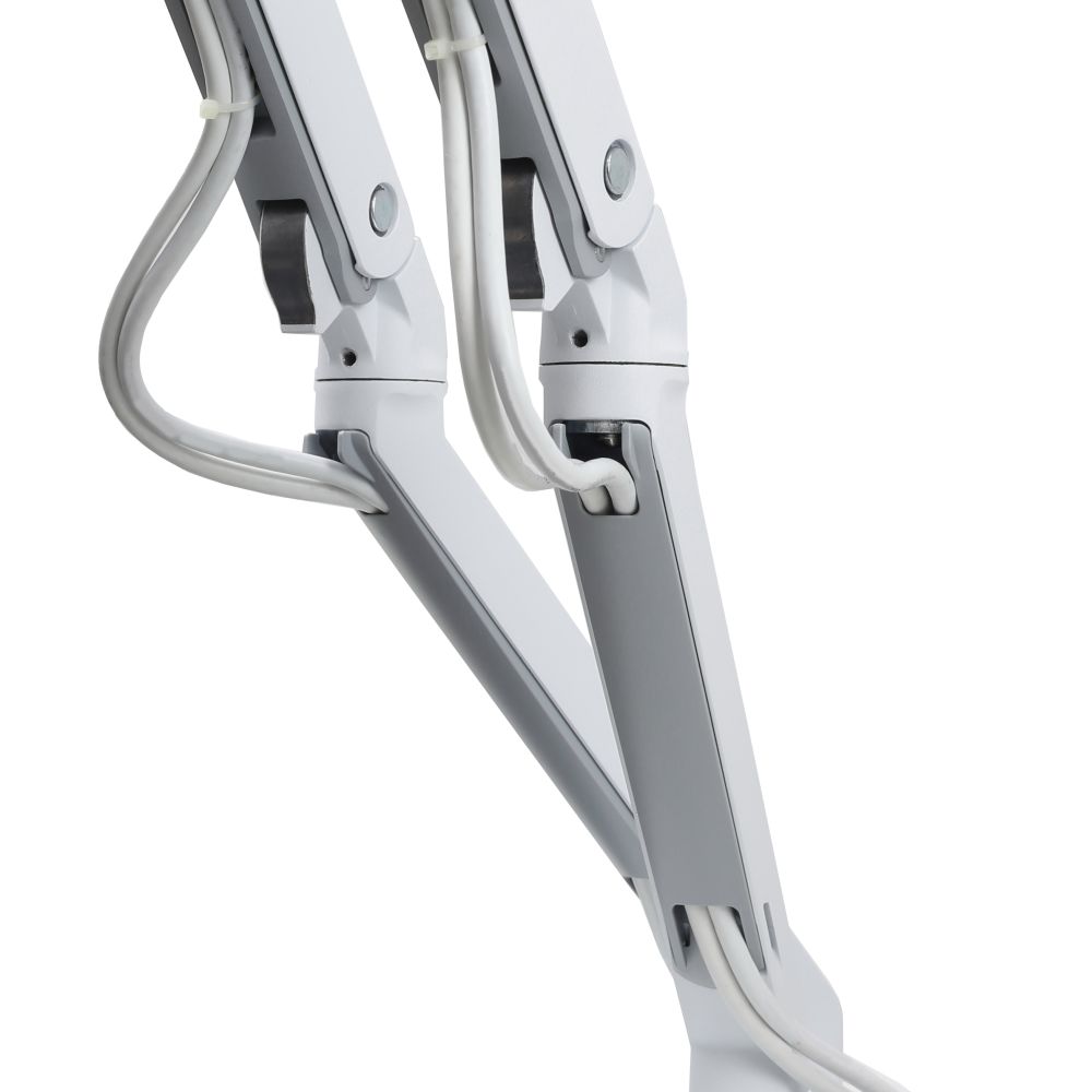 - 貴重な机のスペースをケーブル管理システムで節約し、外形を狭くして—25% LX アームより細くしました