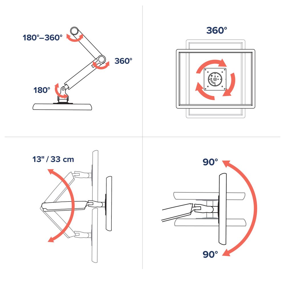 - 特許取得済みConstant Force ™ 技術により、軽いタッチでディスプレイを簡単に調整できます