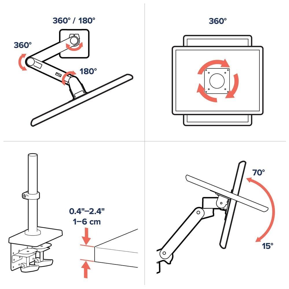 下方向へのチルトを拡張させ、より人間工学的な柔軟性を実現。ニーズに合わせて、スクリーンのポジショニングが行えます。