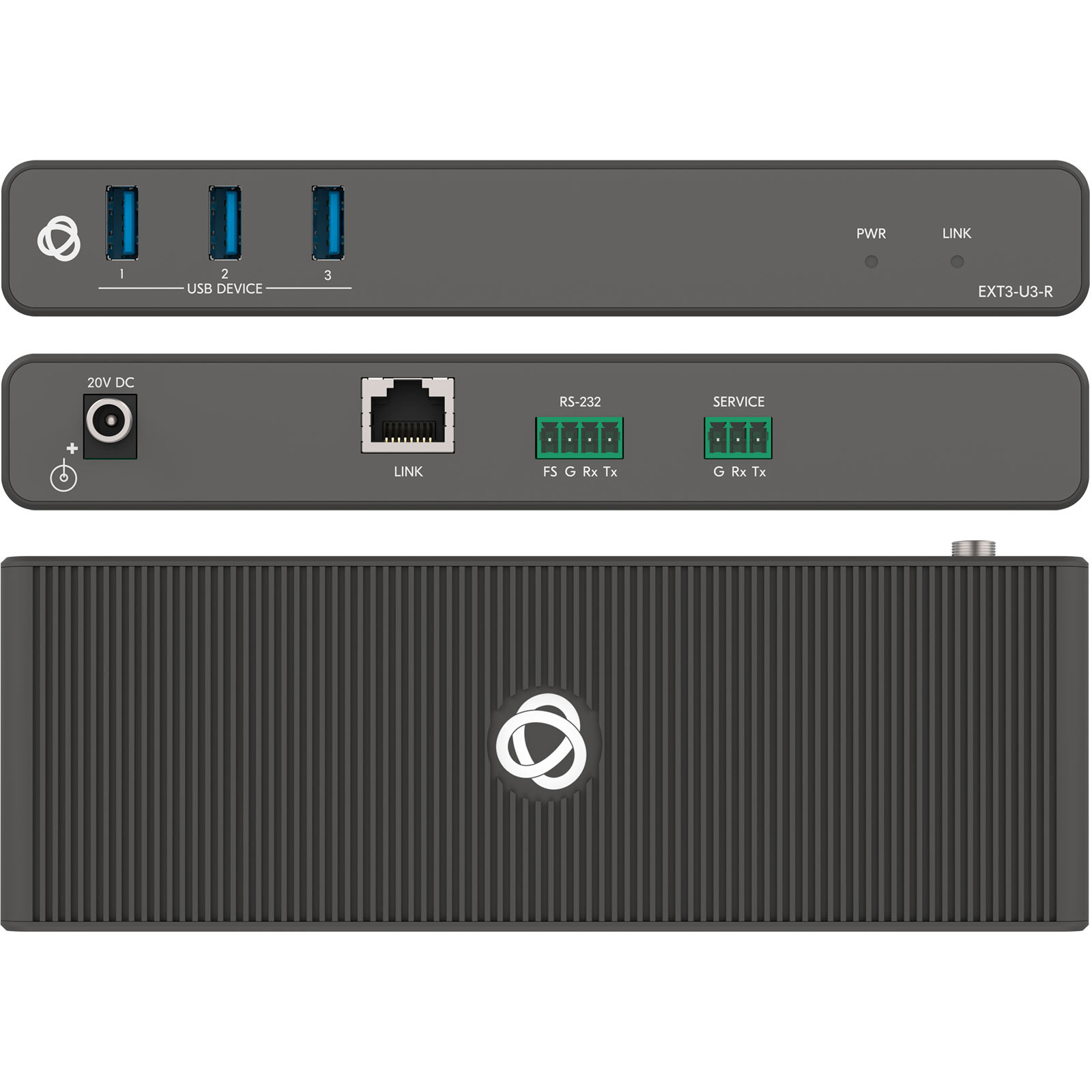 EXT3-U3-RはUSB Type-Aポートを3基搭載し、受信器側で複数のUSBデバイスを接続可能。 USBカメラ、マイク、スピーカーフォン、各種周辺機器を1台のホストPCからまとめて離れた場所で運用できます。