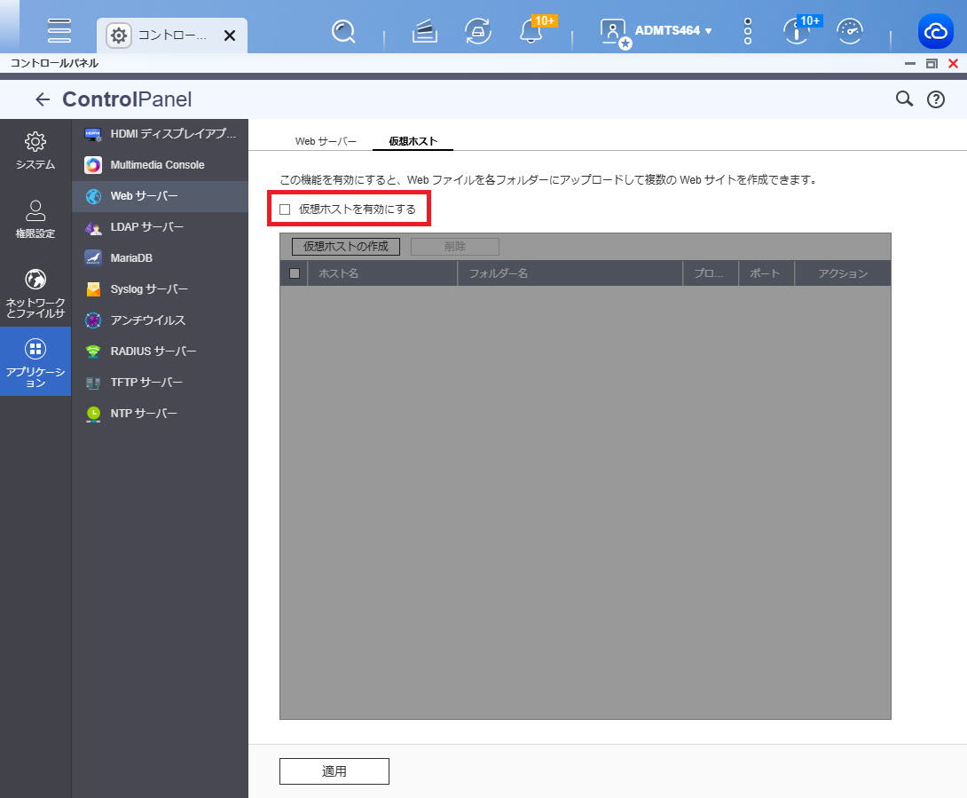 QNAP NASをWebサーバーとして使用する場合は、主にQTSのコントロールパネルから仮想ホストの設定をします。