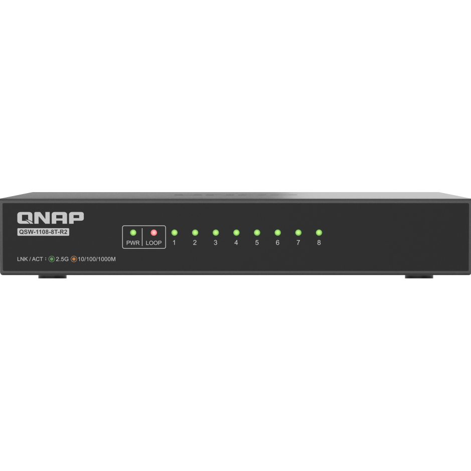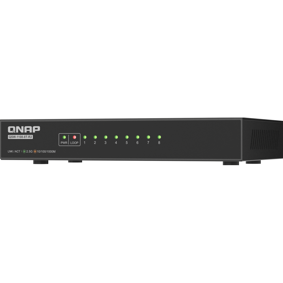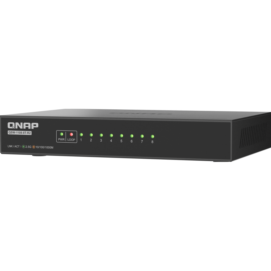手頃でコンパクトな QSW-1108-8T-R2 は、理想的なエントリーレベルの 8 ポート 2.5GbE スイッチです。QSW 1000 シリーズの一部として、このアンマネージドスイッチは、高速で安定したパフォーマンスを経済的な価格で提供します。Wi-Fi 6/6Eに最適化されており、ワークフロー、マルチメディアストリーミング、ファイル転送の強化を求める家庭やオフィス環境に最適です。 台湾で設計・製造された QSW-1108-8T-R2 は、信頼性と安全性の高いネットワーク品質を提供します。