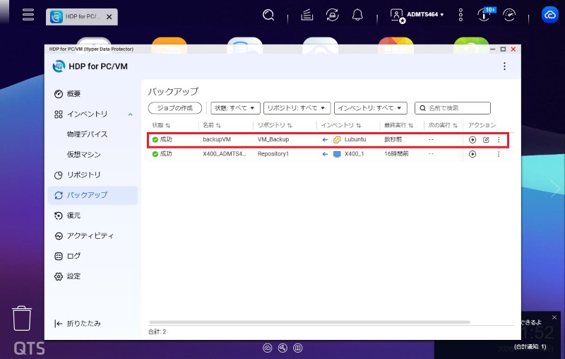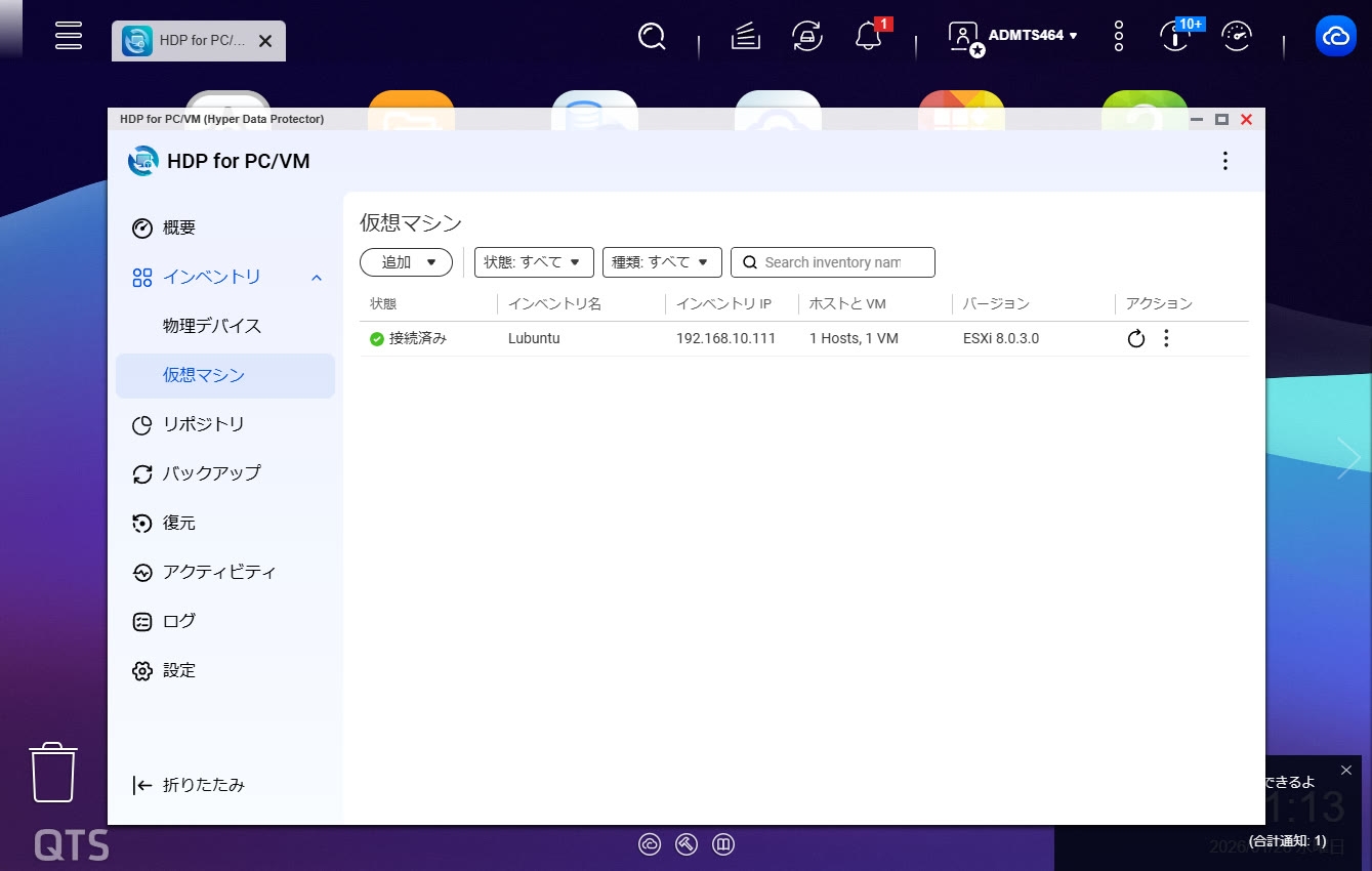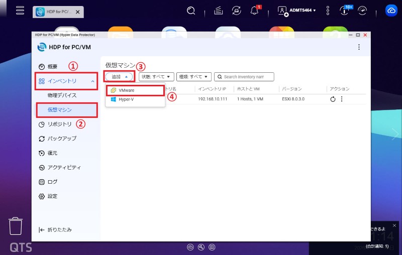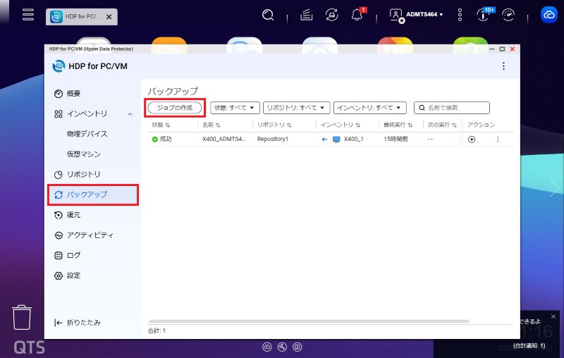 QNAP NASでHDP for PC/VMを使った仮想マシンのバックアップ