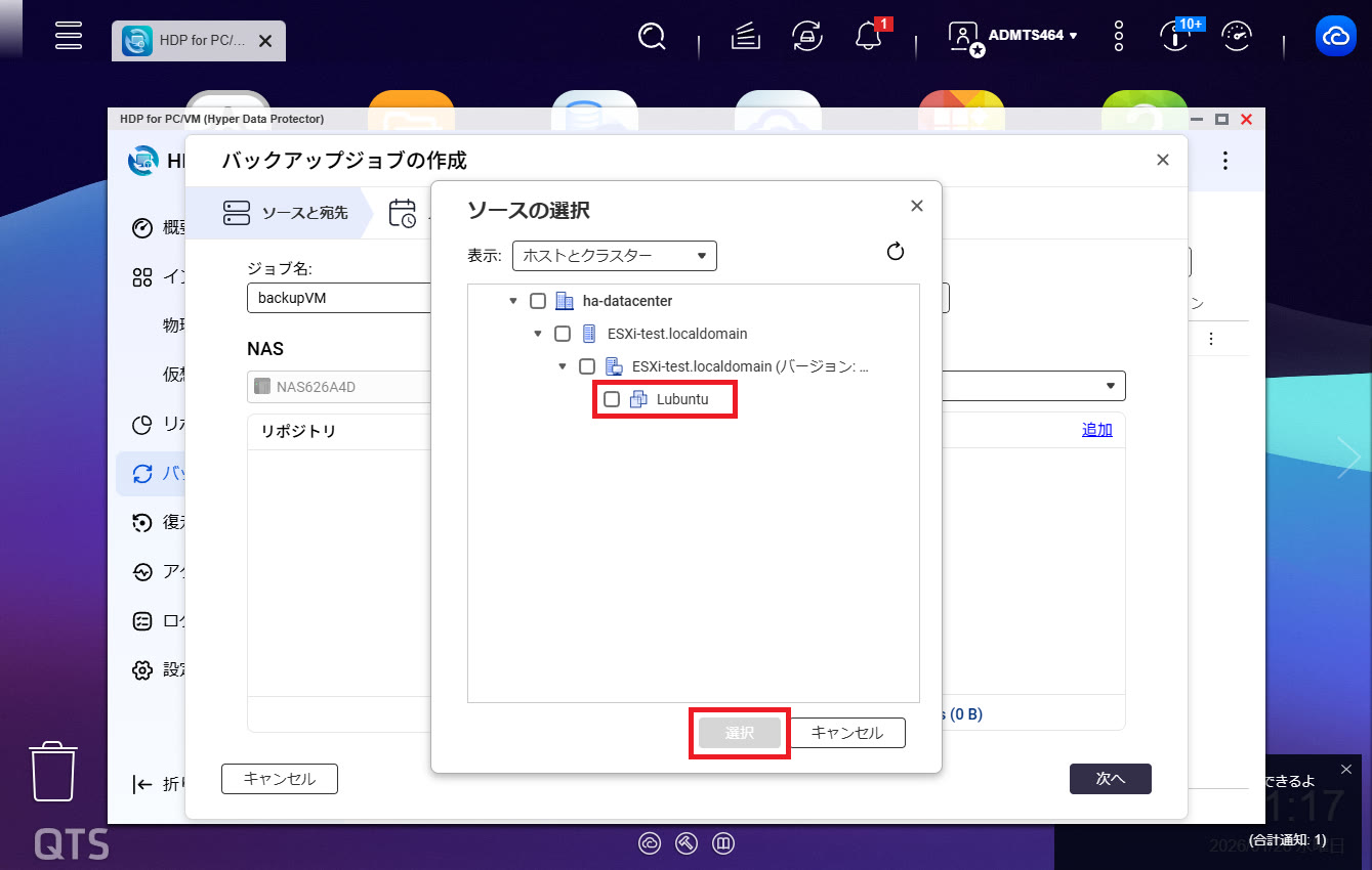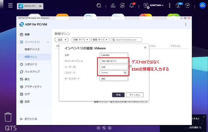 今回は例として、vSphere(ESXi 8)上に構築したUbuntu(Lubuntu)を、QNAP NASのHDPからバックアップを行うシーンを想定します。