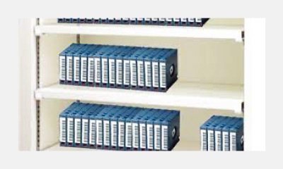 たった名刺二枚分のサイズの LTO カートリッジは、常に通電しておくことも、ネットワークに繋げておく必要もないので、コストもスペースもコンパクトなデータ保管が可能に。
