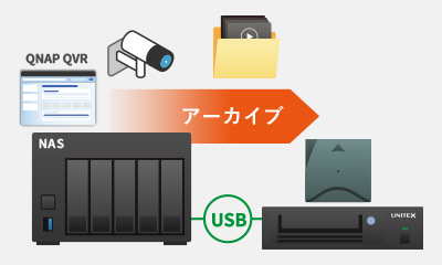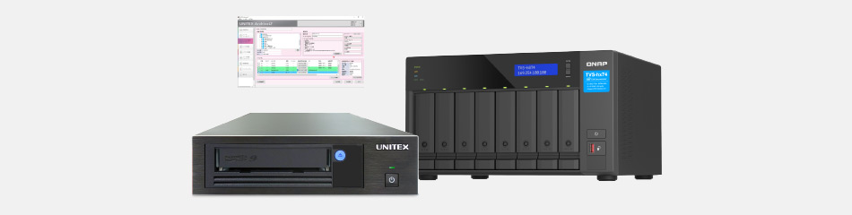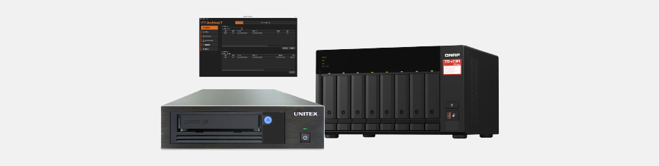 非常にスピーディかつ便利な QNAP NAS と、USB 接続やドラッグ&ドロップ操作を可能にした簡単・安心・確実な UNITEX LTO との強力タッグは、これからのデータの生かし方、付き合い方に、一石を投じるソリューションになるはずです。