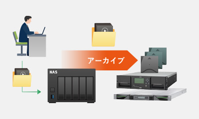 - 映像編集データなどの大容量データをプロジェクト完了後にLTOへアーカイブ