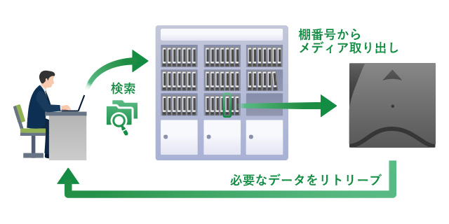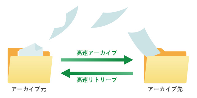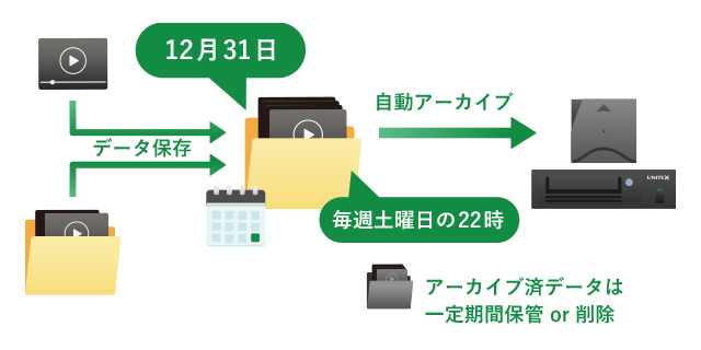 高機能版アーカイブソフトウェアによる、データの自動アーカイブ・オフライン管理