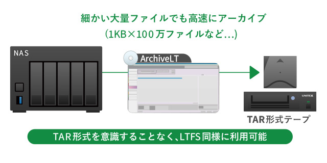 - ネットワークを介さないため、帯域を気にせず高速にLTOアーカイブが可能