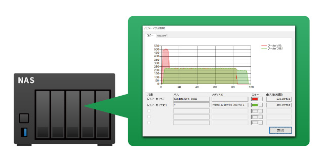 - 多様なRAID構成でのアーカイブシステムの構築に対応。大容量データに転送に。