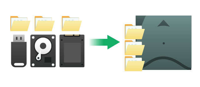 - 各種データのバックアップとして外付けHDDにデータをコピー、集約している