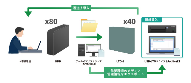 - LTO-6テープを読める装置が無くなる可能性を危惧し、様々なLTFSフォーマットの移行に対応可能な当社サービスを選択