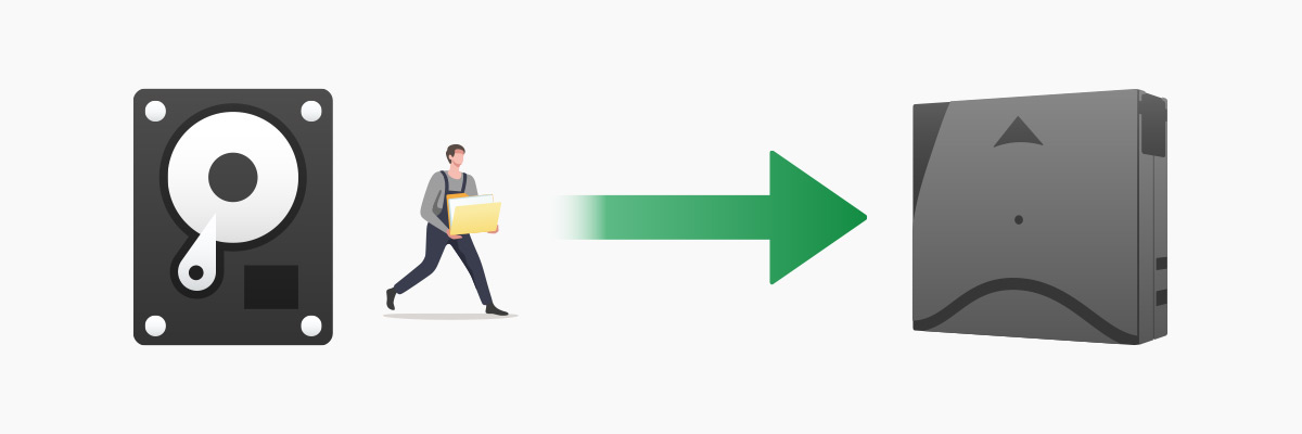 たとえば、NAS 内のデータが知らぬ間に増え続けてしまった際に不要なデータの整理やディスクの増設が必要な点、常にオンライン状態を維持しているため ランサムウェアの脅威にさらされる点、そして、数年に一度訪れるディスク交換のタイミングでは、データ移行に手間がかかる点などが挙げられます。