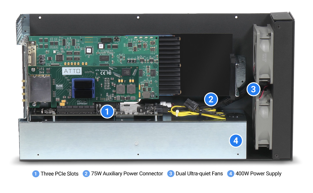 Thunderboltケーブルを介して、拡張スロットのないコンピューターに最大3枚の高性能な非GPU PCIeカードを接続します。