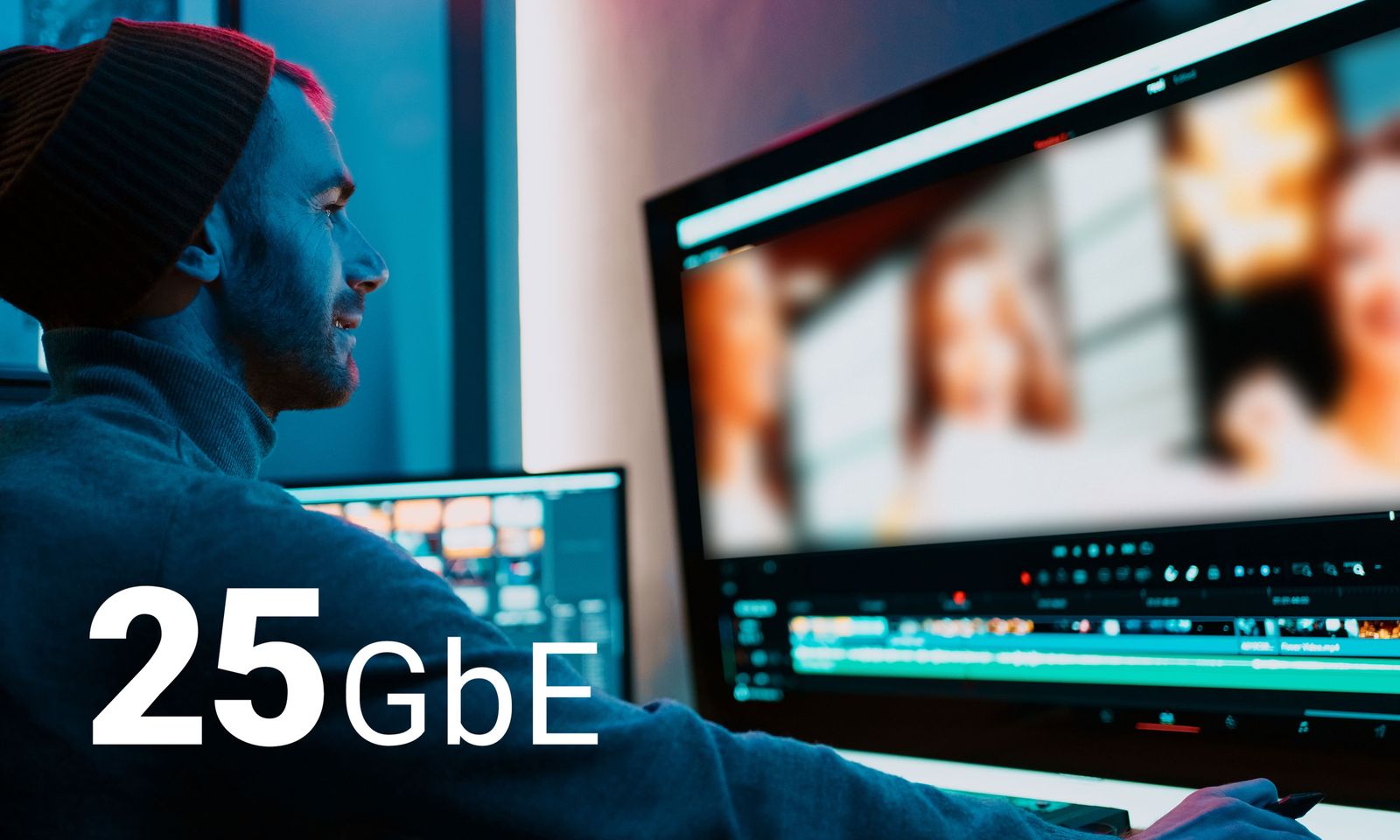 ポストプロダクションの共有ストレージワークグループなど、帯域幅を大量に消費する多くのワークフローでは、10ギガビット・イーサネット(GbE)では最適なパフォーマンスを得るための帯域幅と速度が不足しています。25GbEへのアップグレードは賢明な選択です。25GbEはより優れたパフォーマンスを提供し、10GbEと同じ光ネットワークインフラストラクチャで動作します。Sonnet Twin25G™ PCIeカードは、手頃な価格で強力なソリューションであり、驚異的な高速光ファイバー25GbEネットワーク接続を追加します。