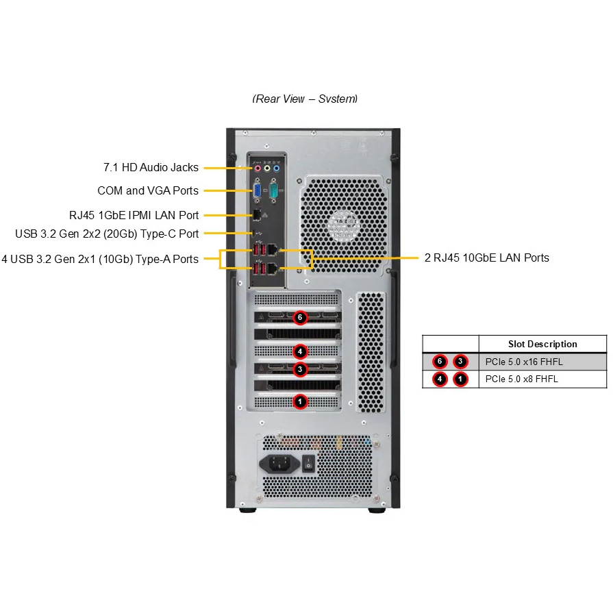 - 2×PCIe 5.0 x16 スロット、2×PCIe 5.0 x8 スロット、2×PCIe 4.0 x4 M.2 slots(RAID 0, 1)、1×MCIO コネクター(PCIe 4.0 x8、NVMe PCIe ドライバー×2に対応)