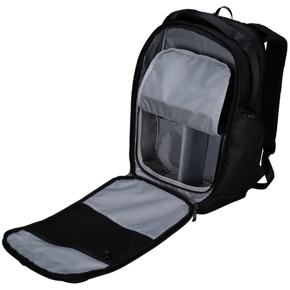 PC専用のSafePort® Sling保護システムにデバイスを滑り込ませれば、どんなにアクティブな移動シーンでも自信を持って挑むことが可能です。メインコンパートメント内では、クッション付きの可動式ディバイダーを備えたボトム部分を活用することで、大切な機材を傷や外部の視線から遮断しつつ、シームレスにパッキングを完了できます。