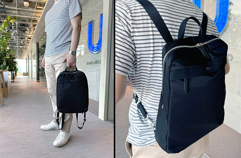 主に通勤で使いました。満員電車でもストレスなく持ち運びできるバッグとして、このリュックはまさにドンピシャでした。