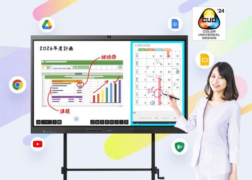 カメラ・マイク内蔵、4K画質、視野角178、ワイヤレスの画面共有も可能な電子ホワイトボード(Android OS搭載モデル有り)