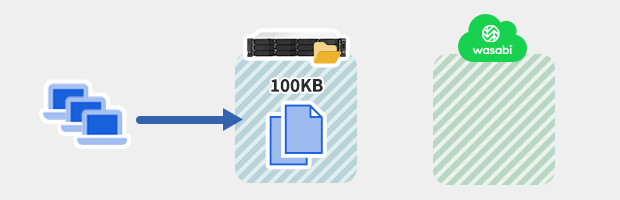 Wasabi Hot Cloud Storage では、課金対象となる容量は、保存されている実データではなく、削除したデータのうちアップロードから30日以内のデータも含みます。