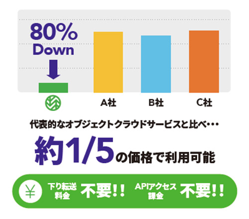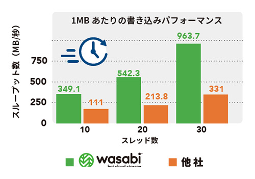 Wasabi Hot Cloud Storage(ワサビ・ホットクラウドストレージ)は、アメリカのWasabi Technologies社が提供する、高性能かつ低コストのオブジェクトストレージサービスです。Amazon S3互換の設計を採用し、既存のクラウド連携システムやNAS、バックアップソフトとの高い互換性を持ちます。以下の特長が評価されています。