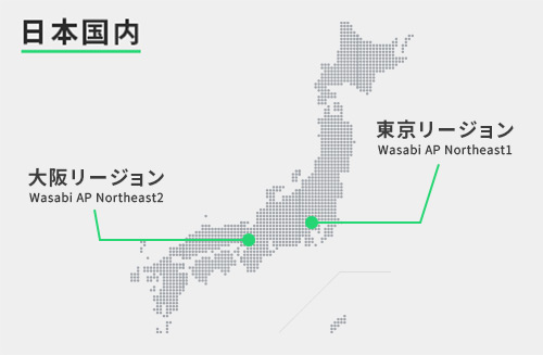 また、Wasabi Object Replication機能によるレプリケーション設定をご利用の場合、「ap-northeast-1(東京)」、「ap-northeast-2(大阪)」、「ap-southeast-1(シンガポール)」、「ap-southeast-2(シドニー)」の4拠点間でご利用をいただけます